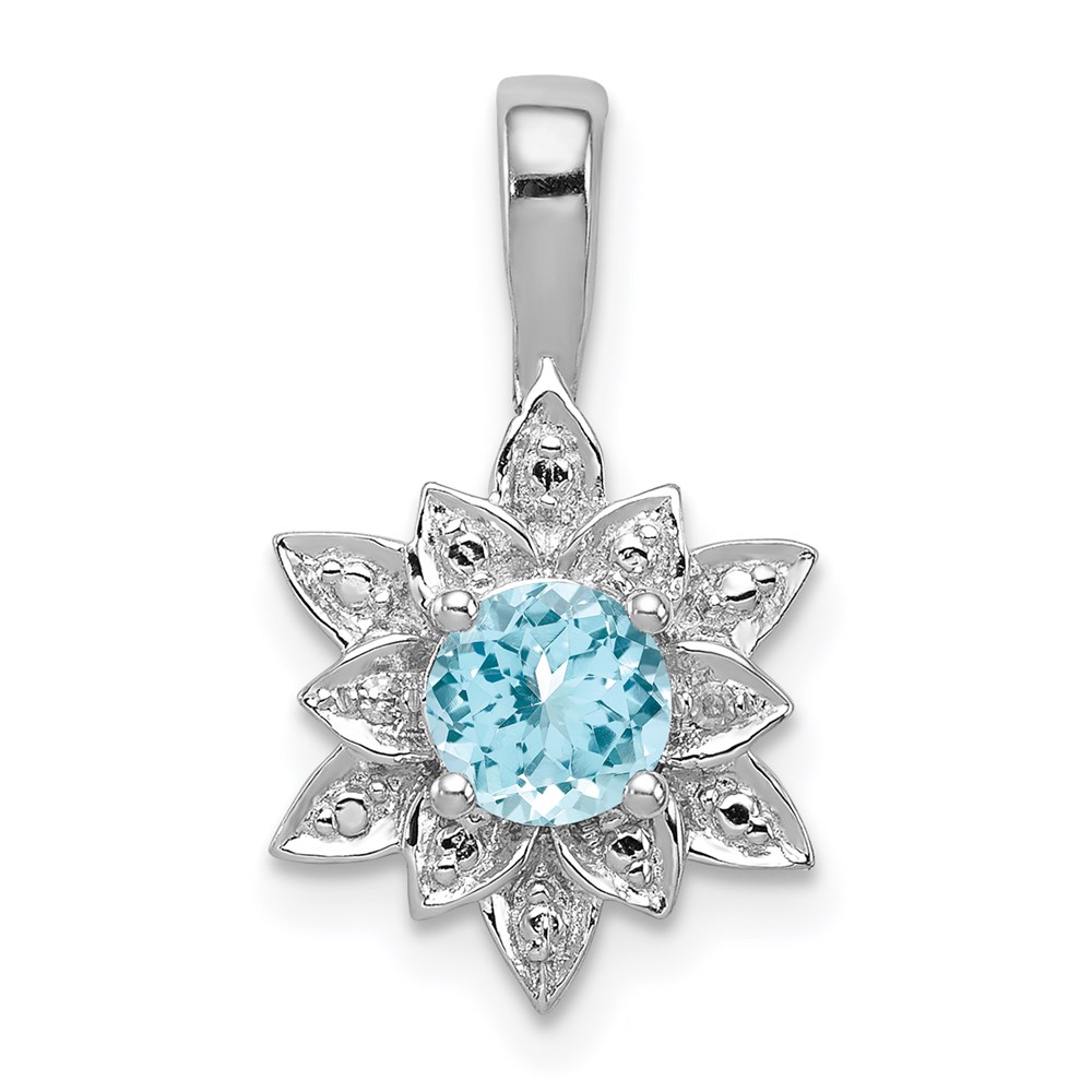 Sterling Silver Rhodium-plated Diamond & Light Blue Topaz Pendant