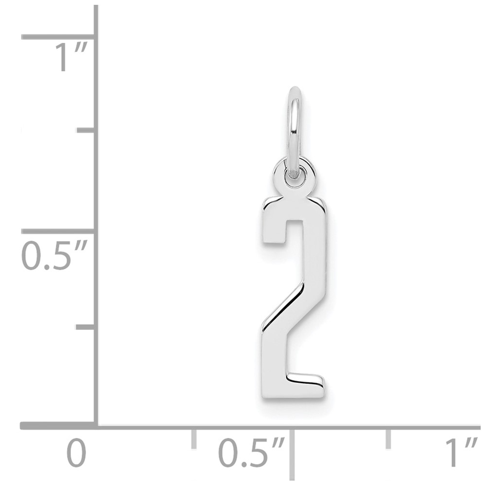 Sterling Silver/Rhodium-plated Elongated Polished Number 2 Charm