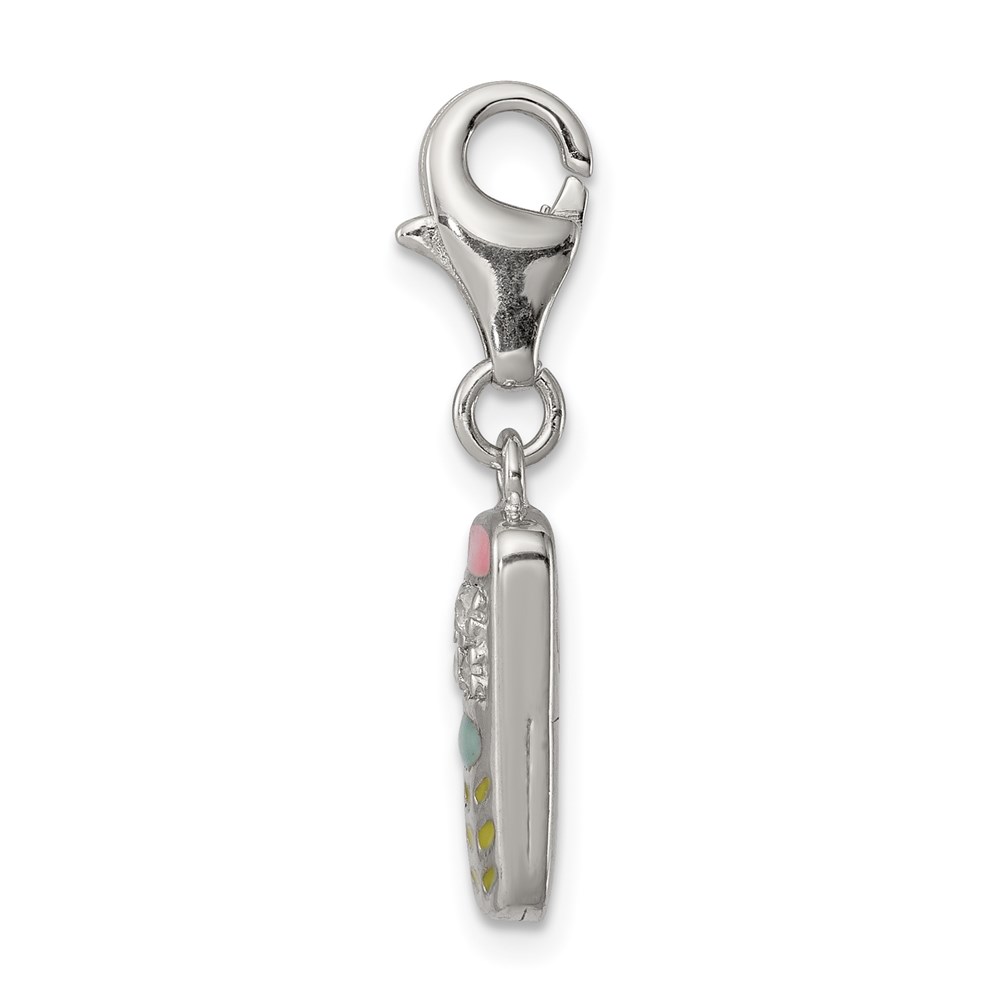 Sterling Silver Rhodium-plated Enameled and CZ Cell Phone Charm
