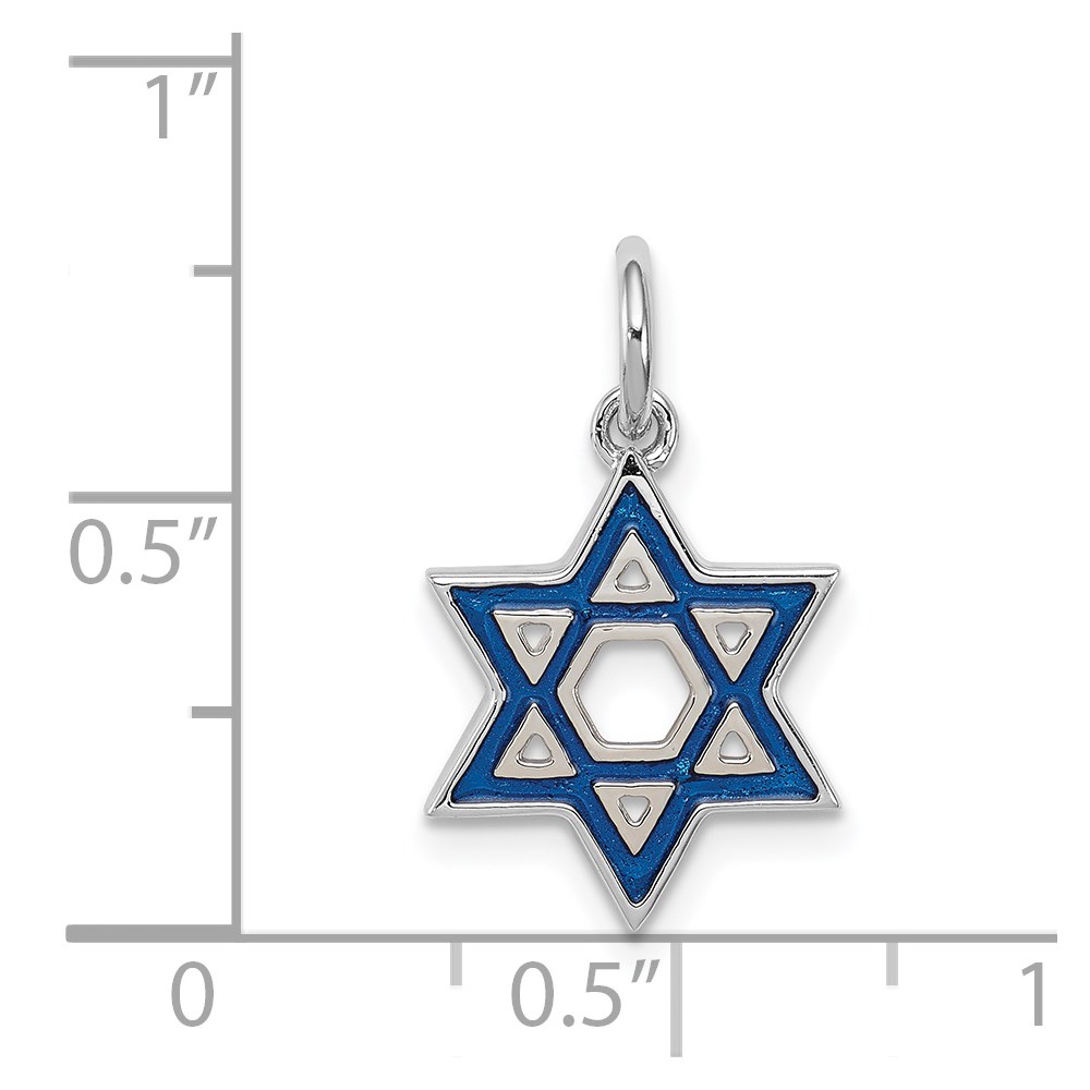 Sterling Silver Rhodium-plated Enameled Blue Star of David Charm