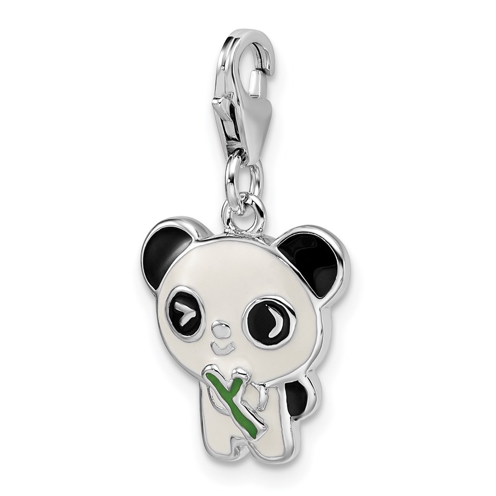 Sterling Silver Rhodium-plated Enameled Panda w/Lobster Clasp Charm