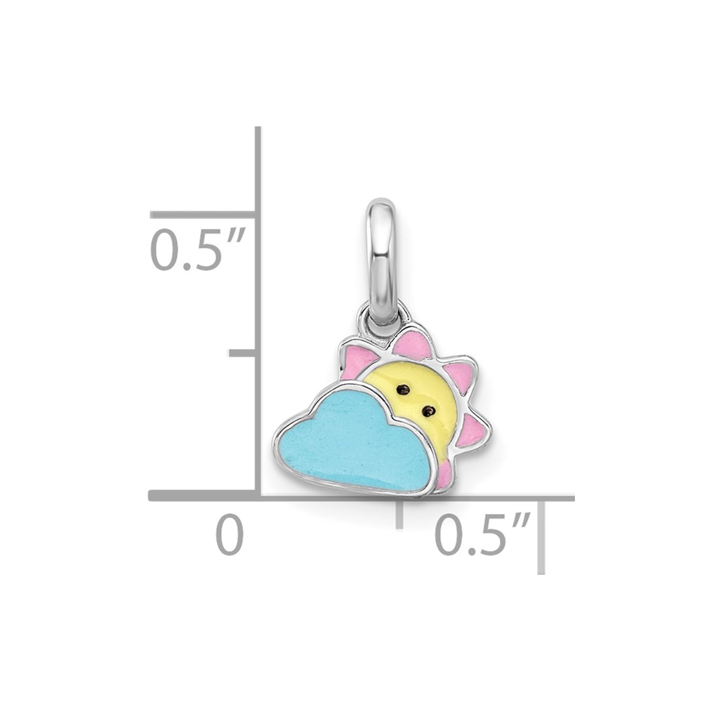 Sterling Silver Rhodium-plated Enameled Sun & Cloud Children’s Pendant