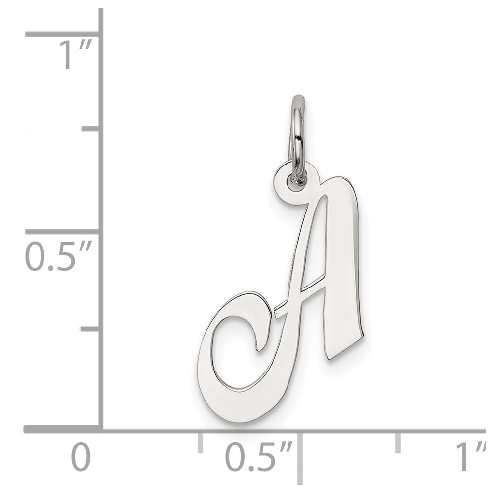 Sterling Silver Rhodium-plated Fancy Script Letter A Initial Charm