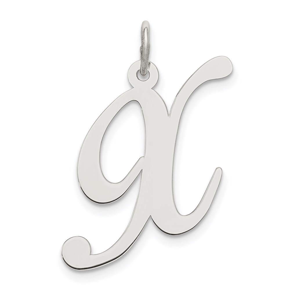 Sterling Silver Rhodium-plated Fancy Script Letter X Initial Charm