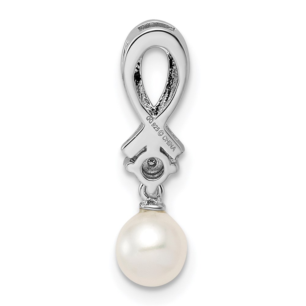 Sterling Silver Rhodium-plated FW Cultured Pearl Diamond Chain Slide