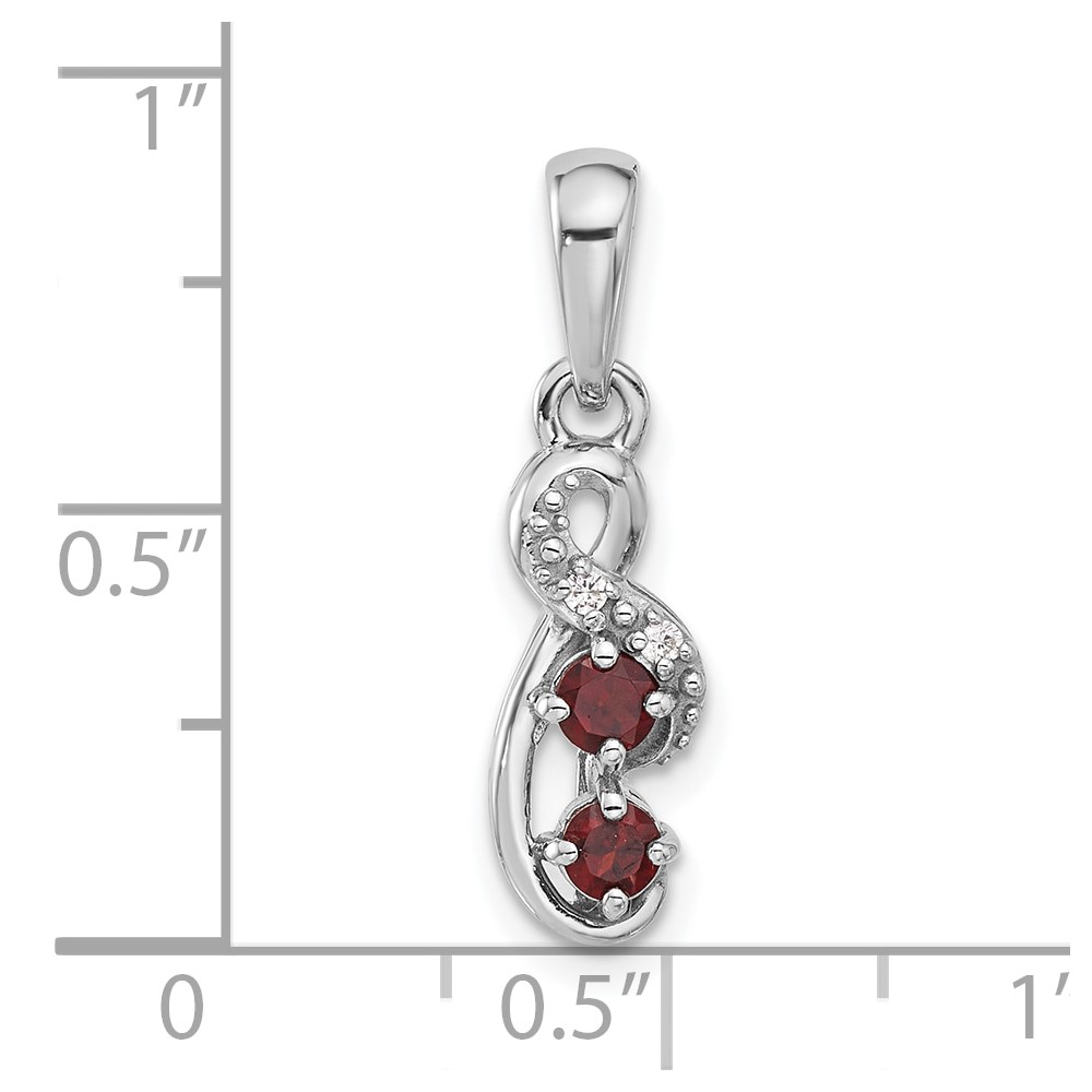 Sterling Silver Rhodium-plated Garnet and CZ Swirl Pendant