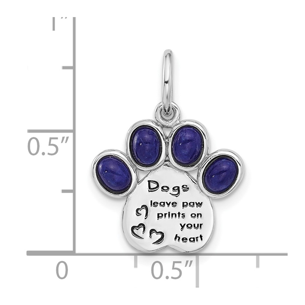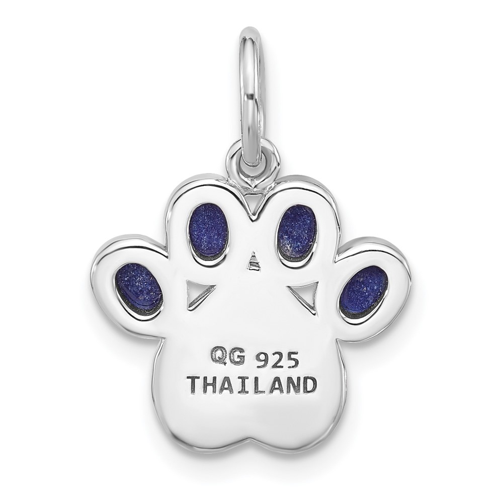 Sterling Silver Rhodium-plated Lapis Lazuli Enamel Paw Print Pendant