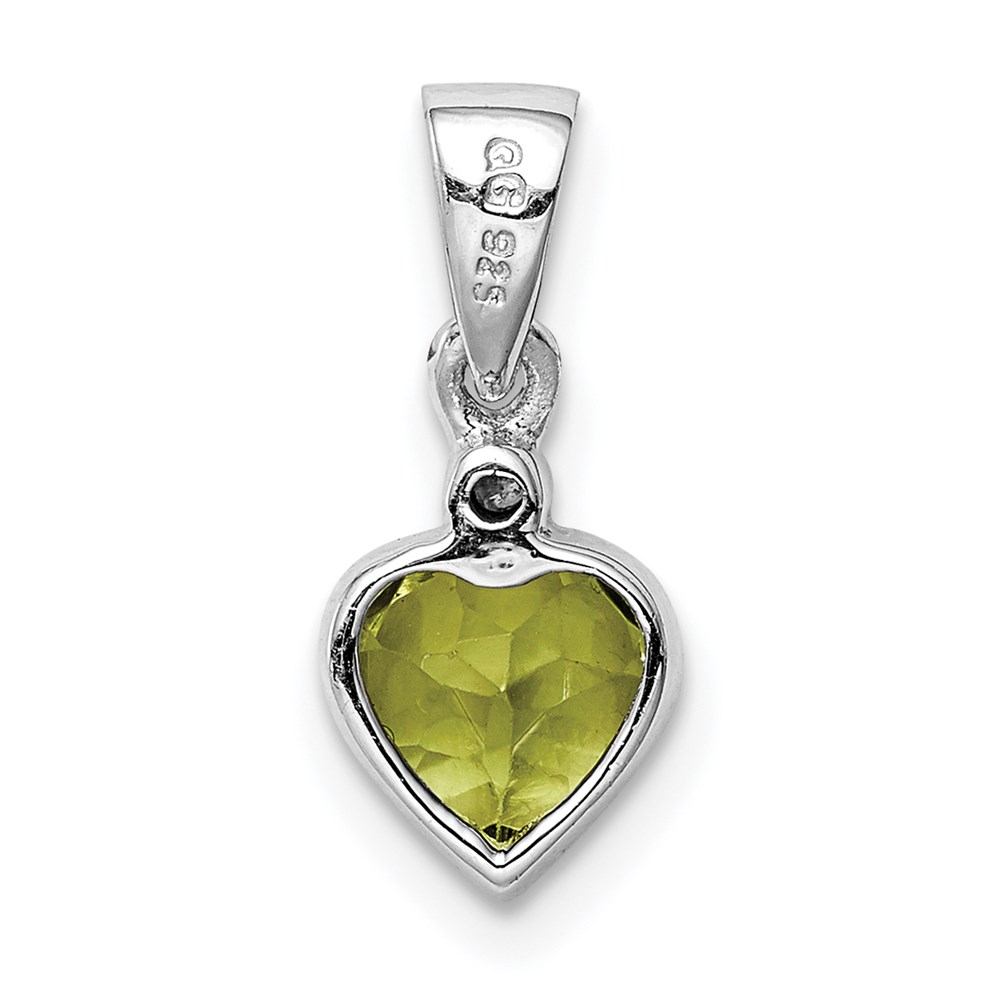 Sterling Silver Rhodium Plated Peridot and Diamond Pendant