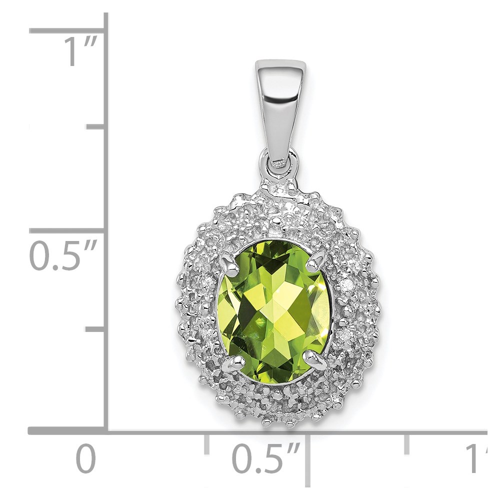 Sterling Silver Rhodium Plated Peridot and Diamond Pendant