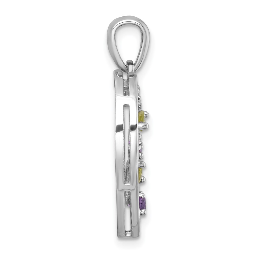 Sterling Silver Rhodium-plated Polished Amethyst and Peridot Flowers in Heart Pendant