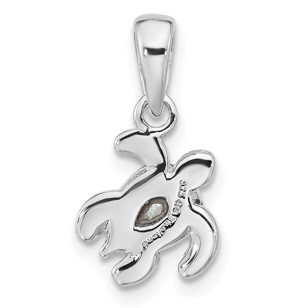 Sterling Silver Rhodium-plated Polished and Antiqued Crystal November Birthstone Turtle Pendant