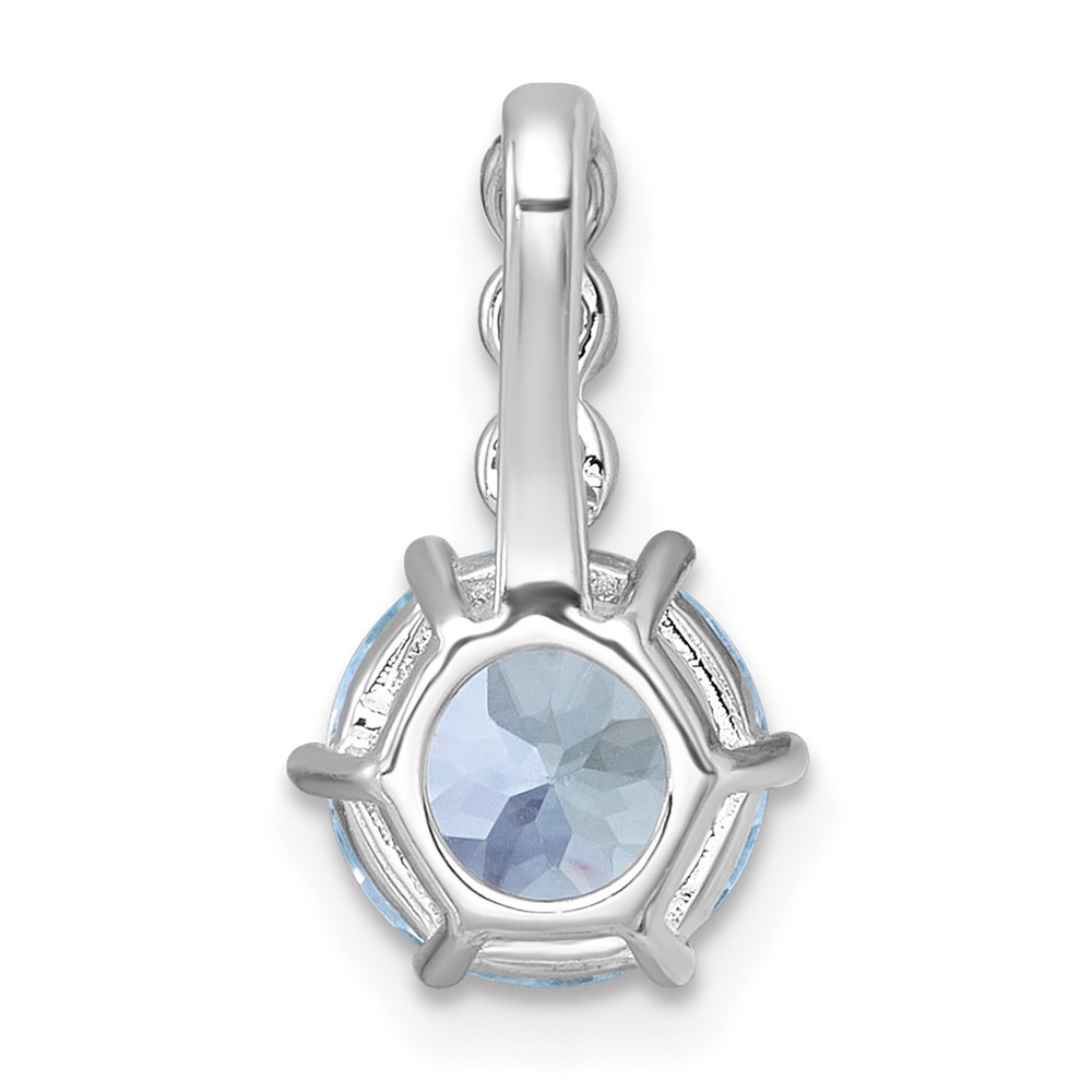 Sterling Silver Rhodium-plated Polished and Beaded Round Sky Blue and White Topaz Chain Slide Pendant