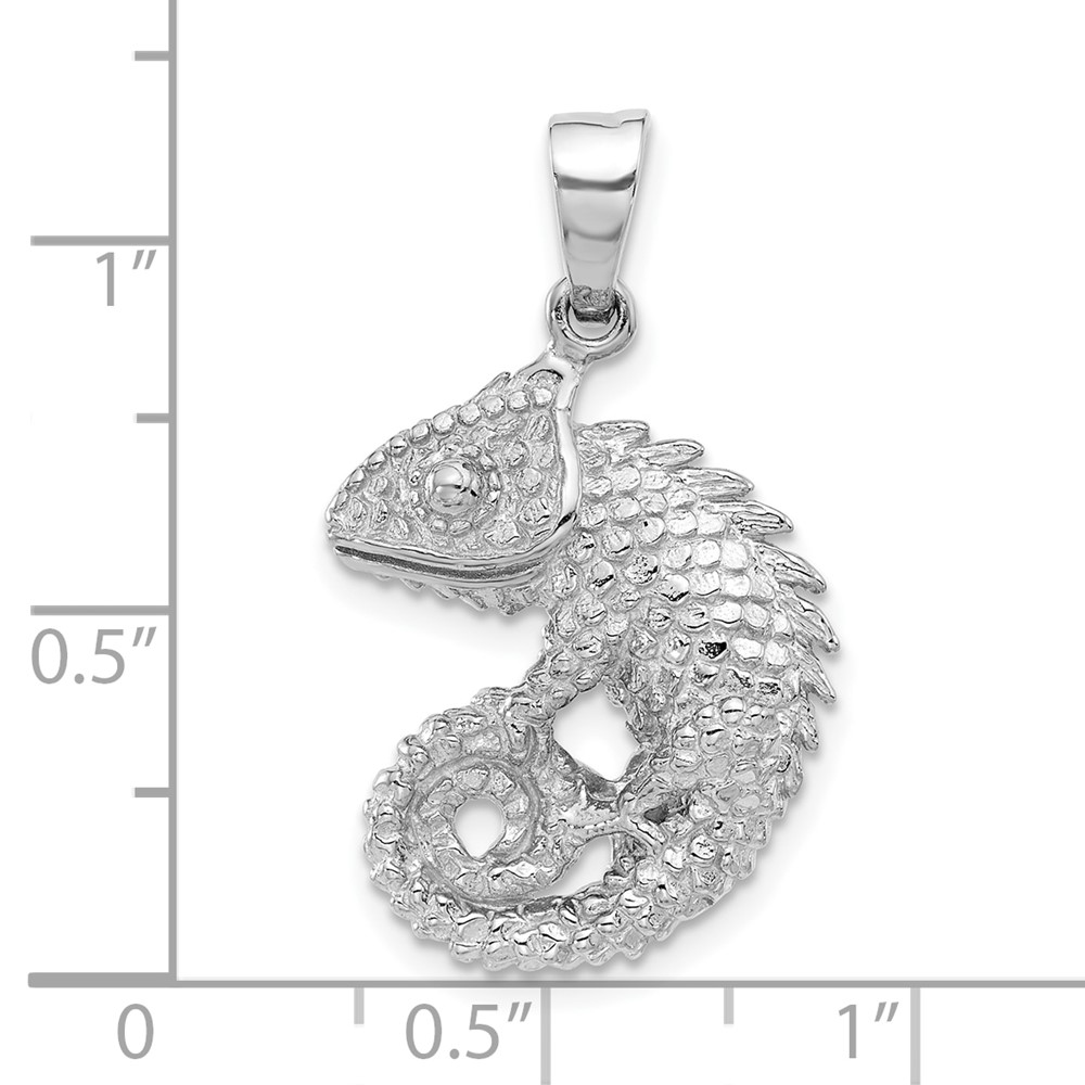Sterling Silver Rhodium-plated Polished and Textured 3D Chameleon Pendant