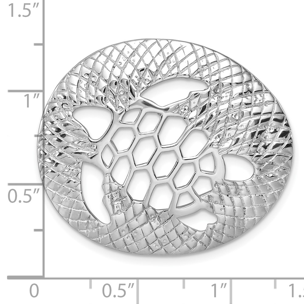 Sterling Silver Rhodium-Plated Polished and Textured Cutout Turtle Chain Slide
