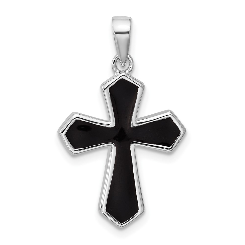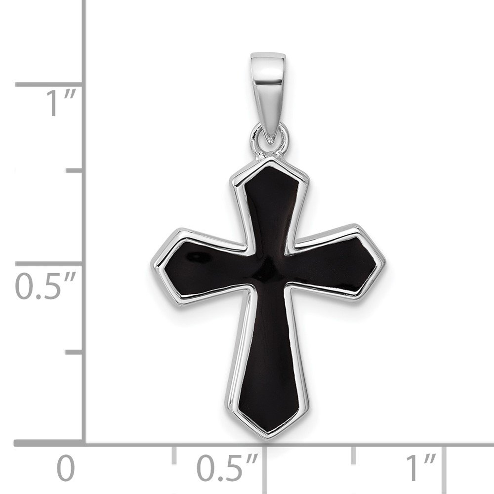 Sterling Silver Rhodium-plated Polished Black Enameled Cross Pendant