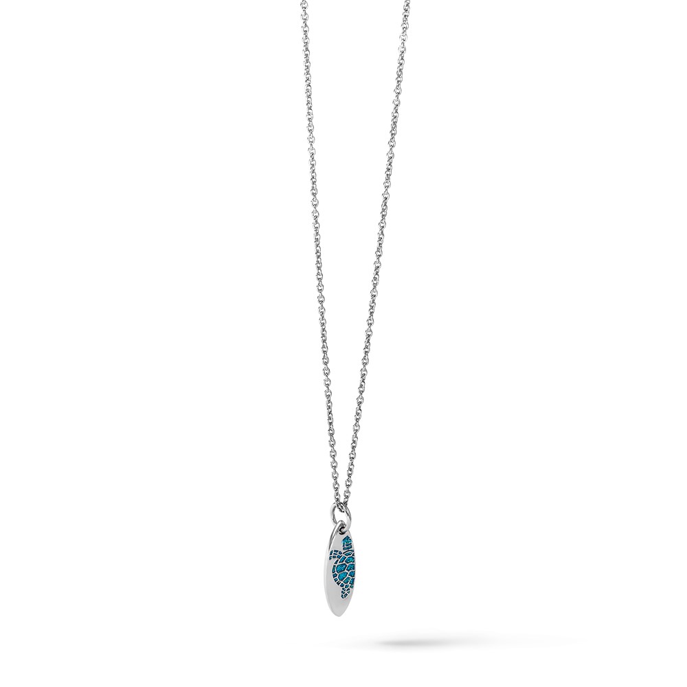 Sterling Silver Rhodium-plated Polished Blue Enamel Turtle Surfboard Pendant