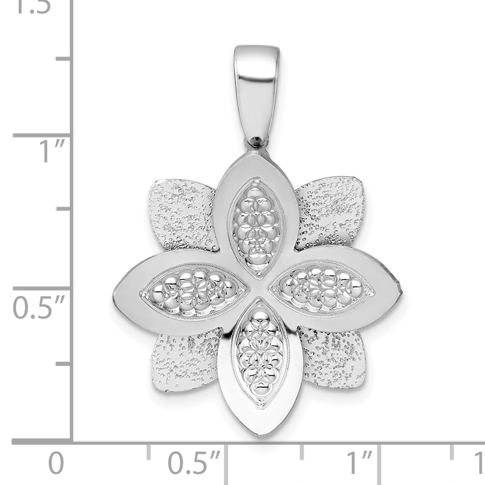 Sterling Silver Rhodium-plated Polished Brushed and Textured Flower Pendant