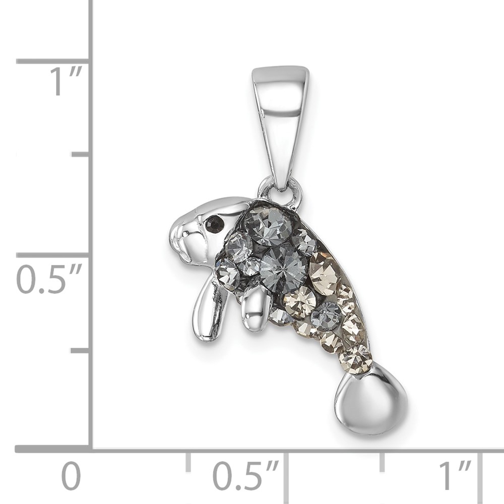 Sterling Silver Rhodium-plated Polished Crystal Manatee Pendant