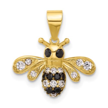 Sterling Silver Rhodium-plated Polished CZ Bumble Bee Pendant