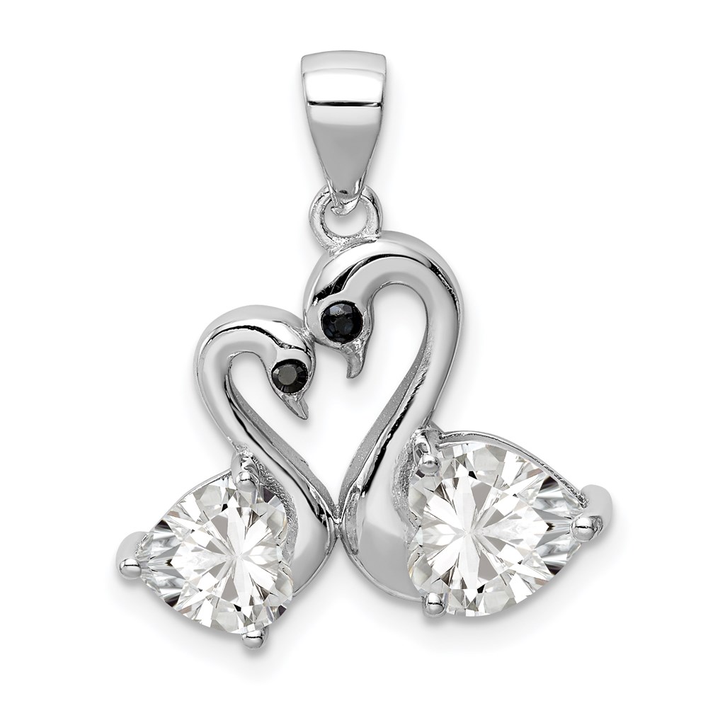Sterling Silver Rhodium-plated Polished CZ Swan Couple Pendant