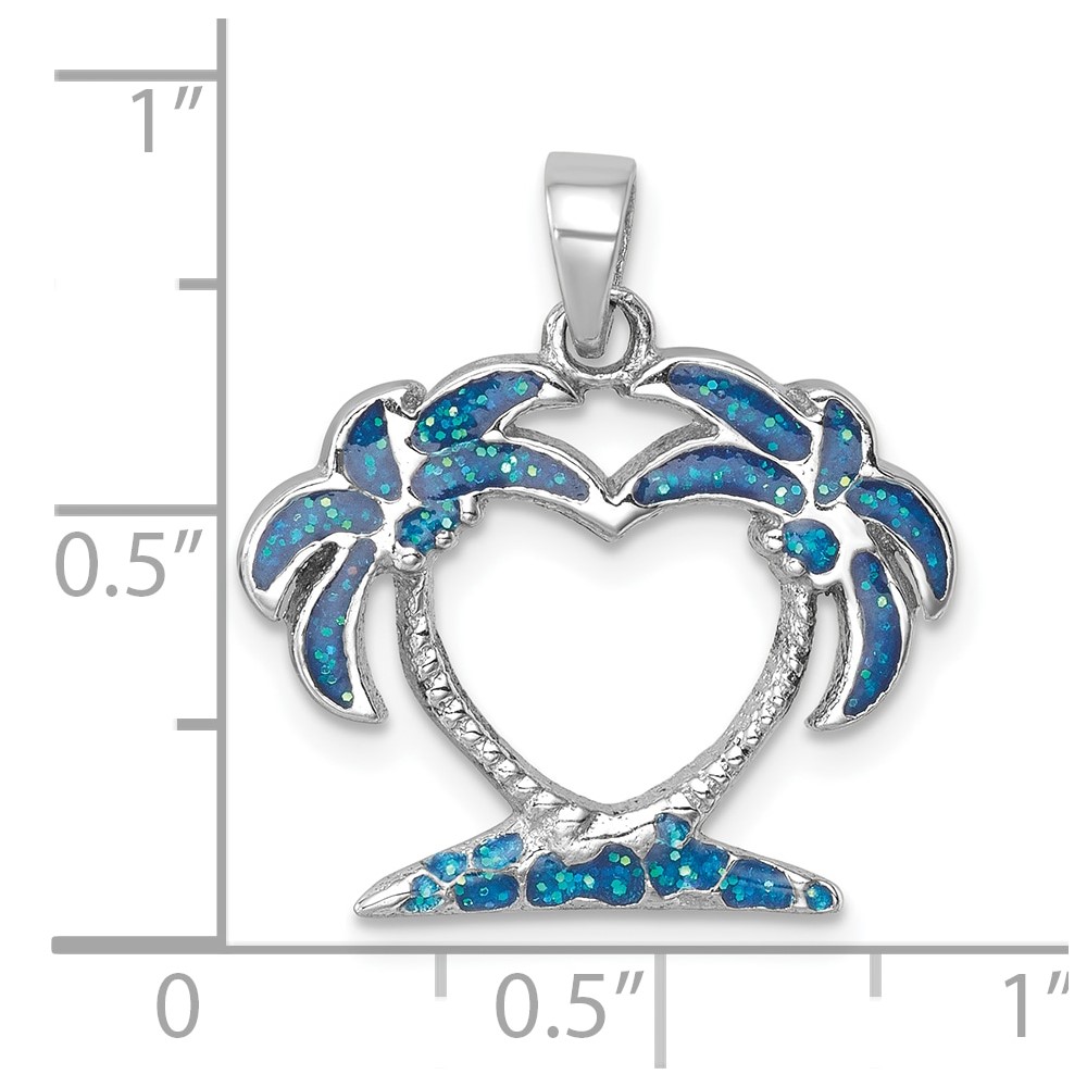 Sterling Silver Rhodium-plated Polished Double Palm Tree Pendant