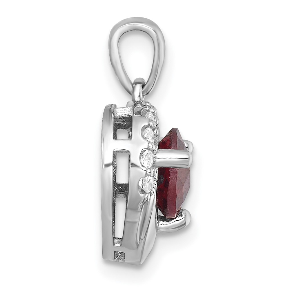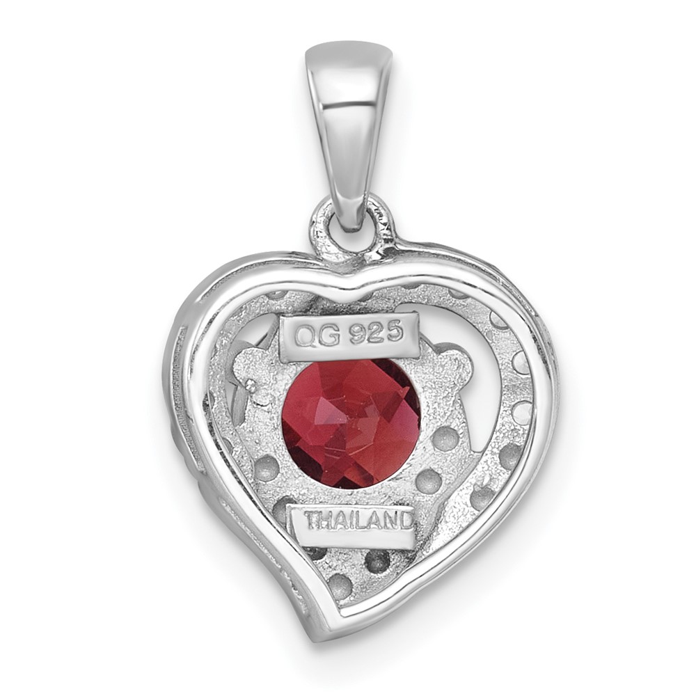 Sterling Silver Rhodium-plated Polished Fancy Garnet and White Topaz Heart Pendant