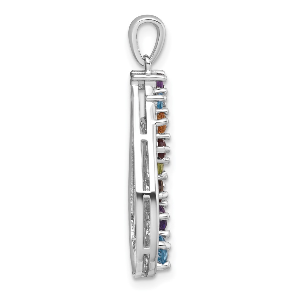 Sterling Silver Rhodium-plated Polished Fancy Multi Gemstone Teardrop Pendant