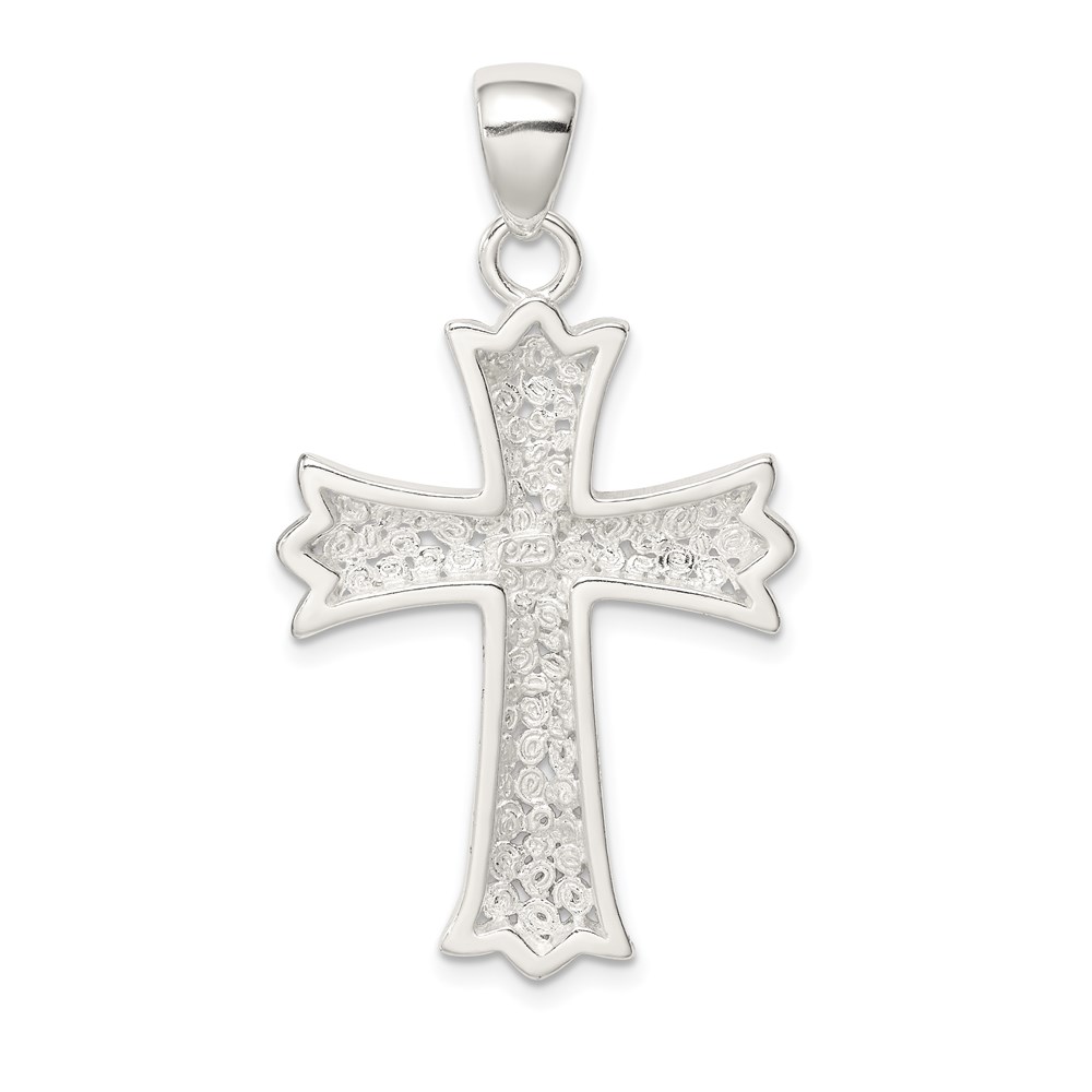 Sterling Silver Rhodium-plated Polished Filigree Cross Pendant