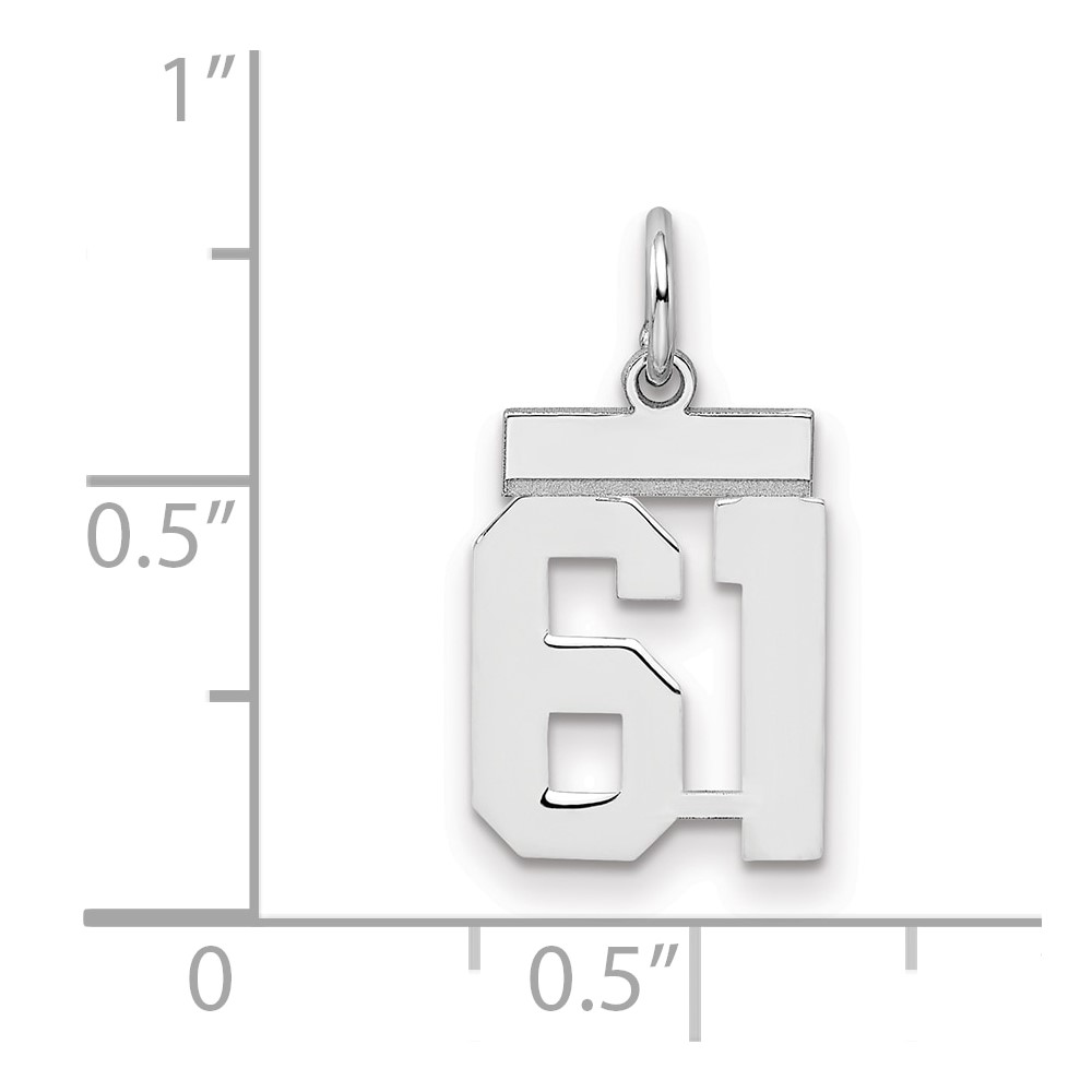 Sterling Silver/Rhodium-plated Polished Number 61 Charm