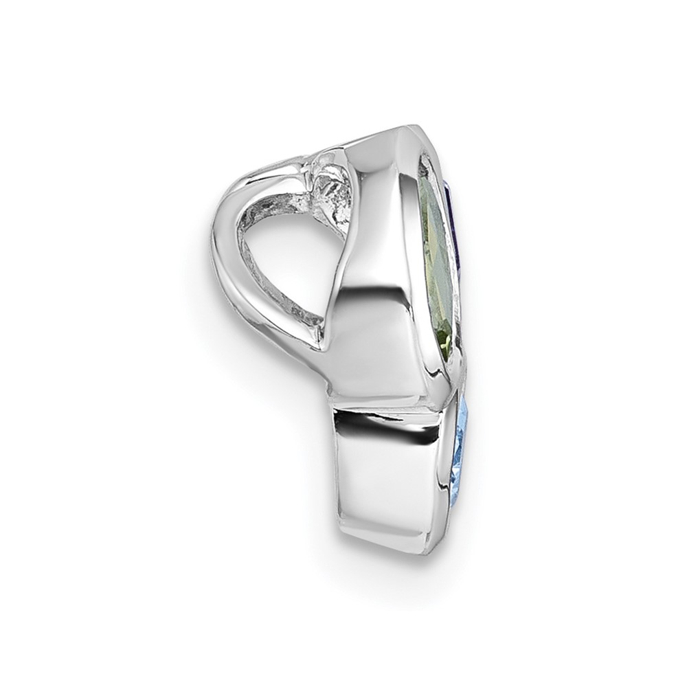 Sterling Silver Rhodium-plated Polished Pear Blue Topaz, Oval Peridot and Emerald-cut Amethyst Chain Slide Pendant