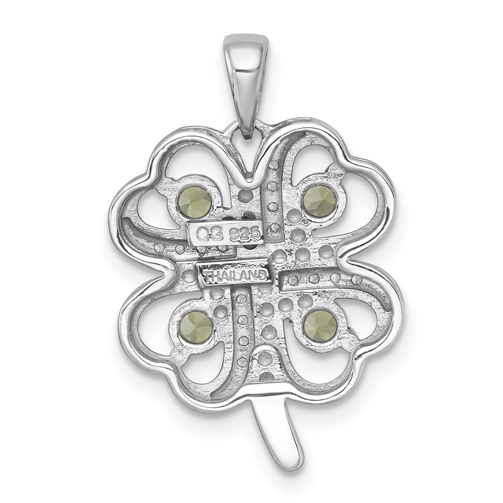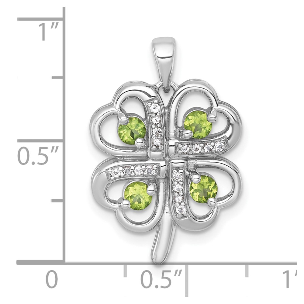 Sterling Silver Rhodium-plated Polished Peridot and White Topaz 4-Leaf Clover Pendant