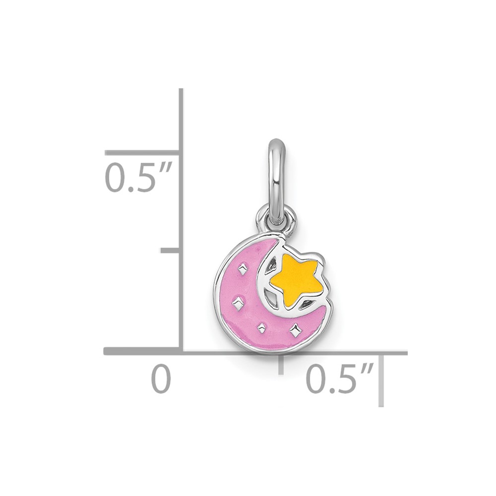 Sterling Silver Rhodium-plated Polished Pink and Yellow Enamel Moon and Star Childrens Pendant