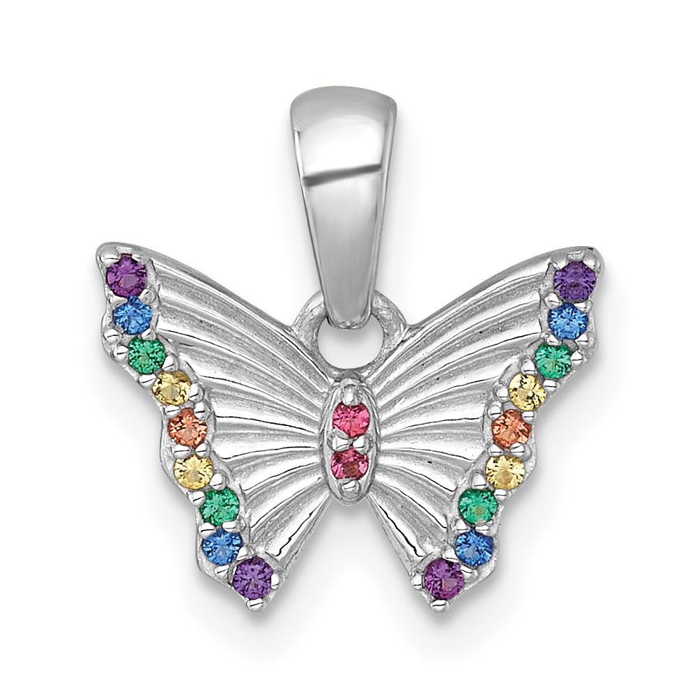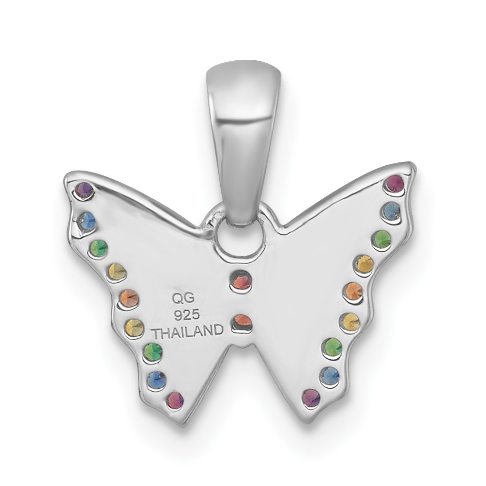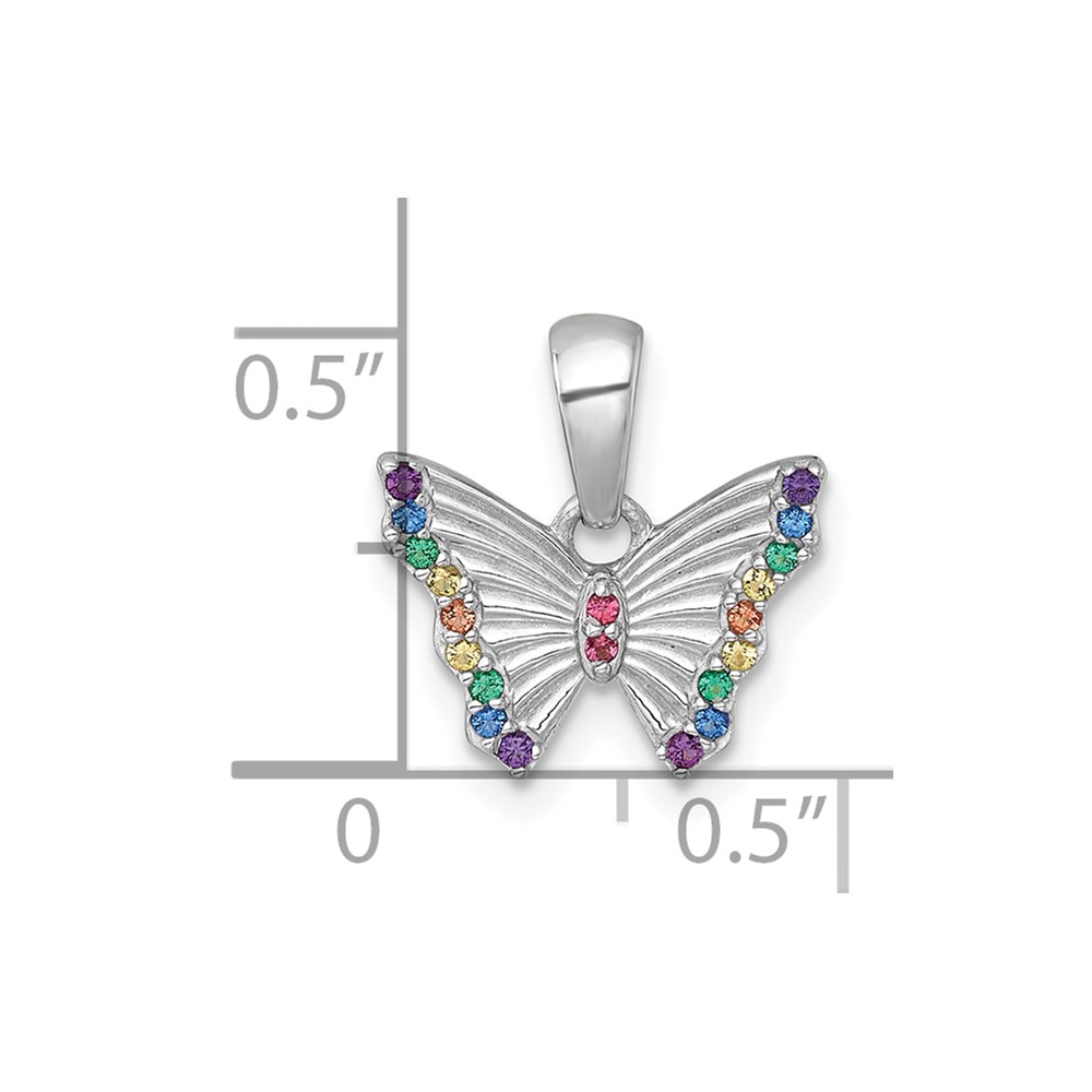 Sterling Silver Rhodium-plated Polished Rainbow Nano Crystals Butterfly Childrens Pendant