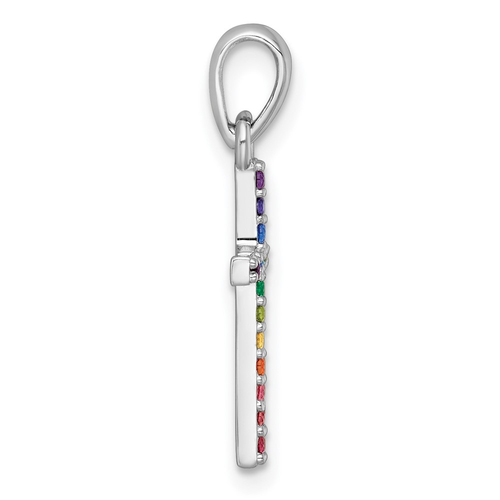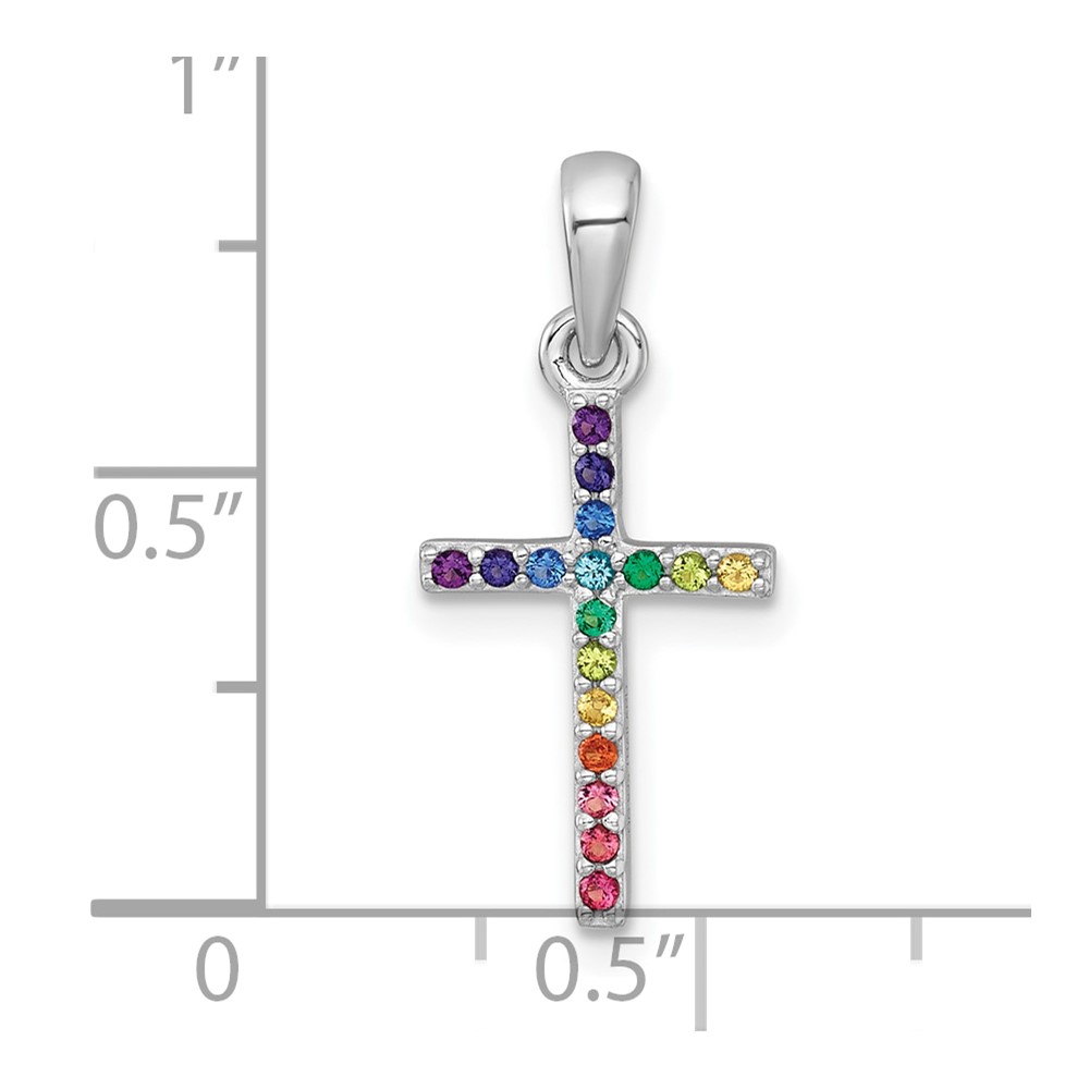 Sterling Silver Rhodium-plated Polished Rainbow Nano Crystals Childrens Cross Pendant
