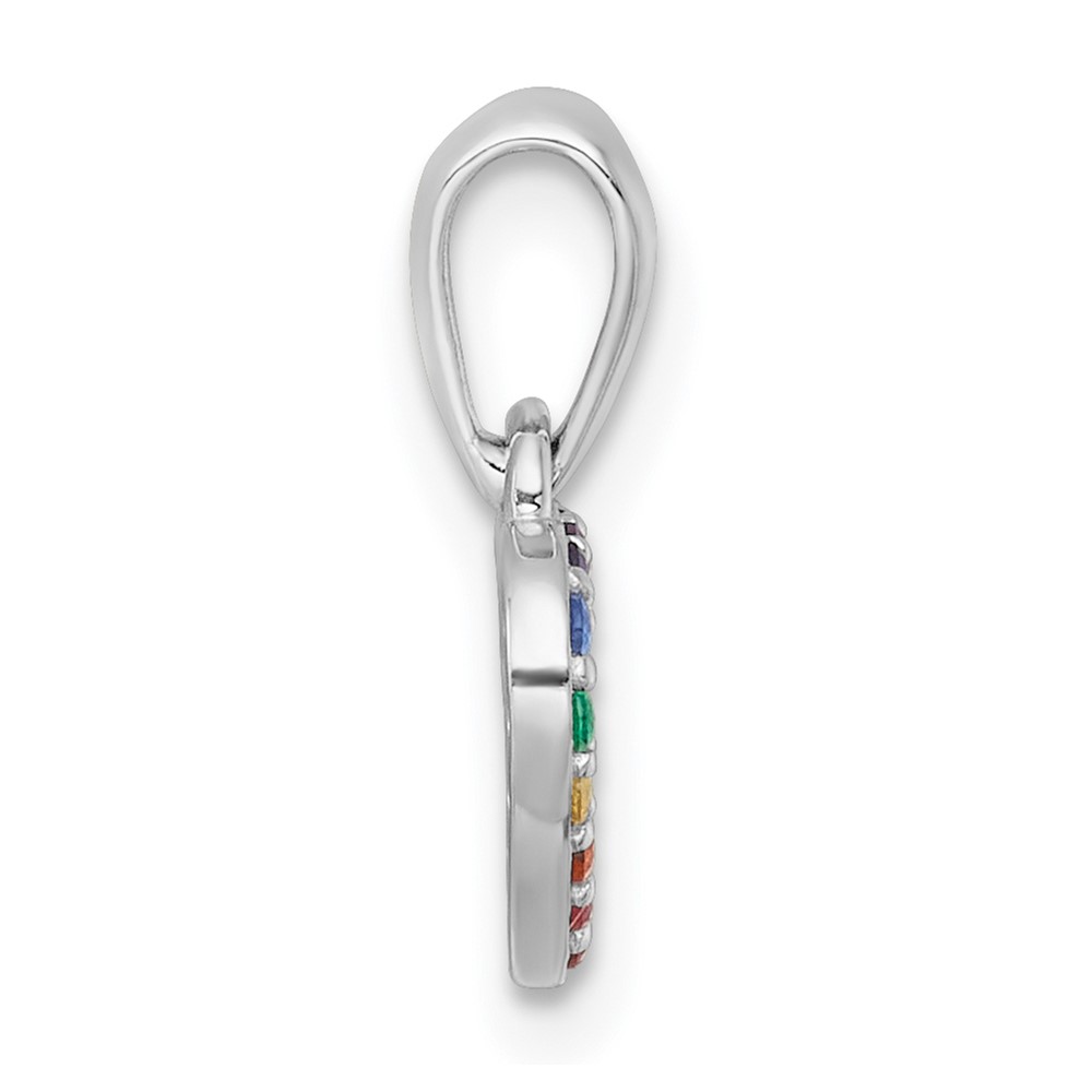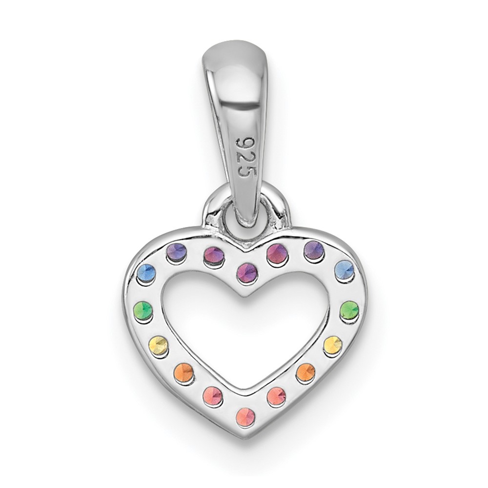 Sterling Silver Rhodium-plated Polished Rainbow Nano Crystals Open Heart Shape Childrens Pendant