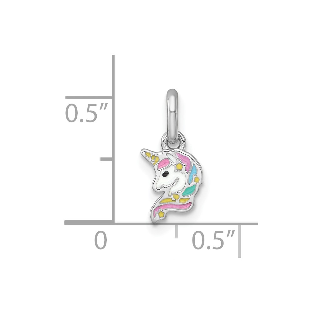 Sterling Silver Rhodium-plated Polished White and Rainbow Enamel Unicorn Head Childrens Pendant