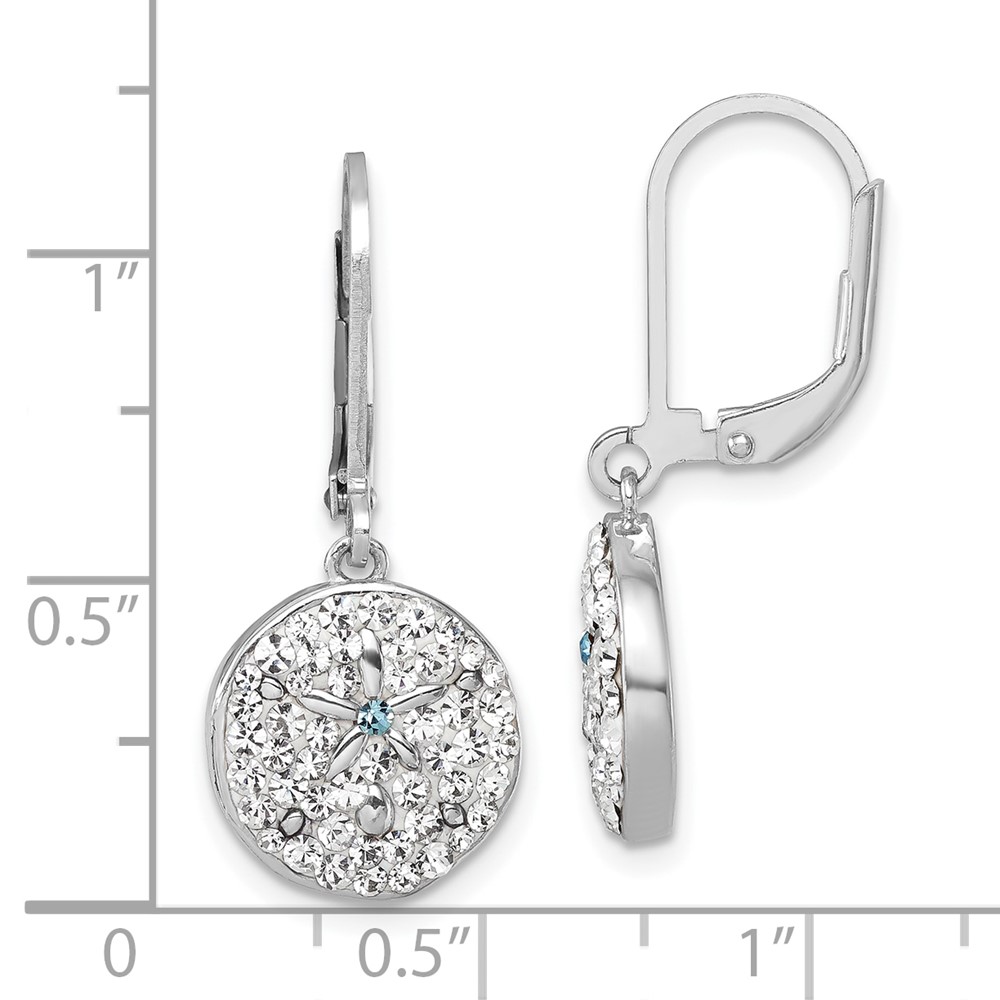 Sterling Silver Rhodium-Plated Polished White Crystal Sand Dollar Dangle Earrings
