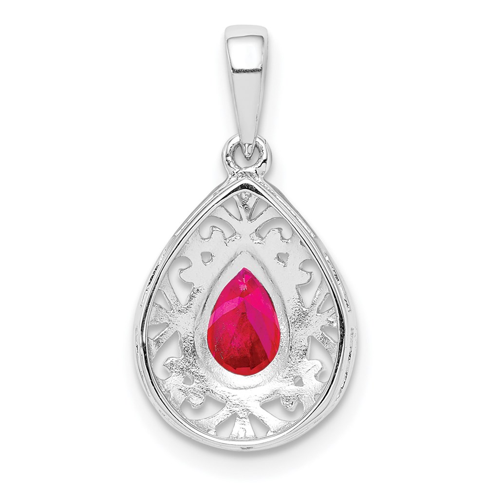 Sterling Silver Rhodium Plated Ruby Teardrop Pendant
