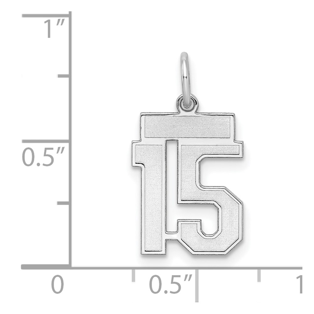 Sterling Silver/Rhodium-plated Satin Number 15 Charm