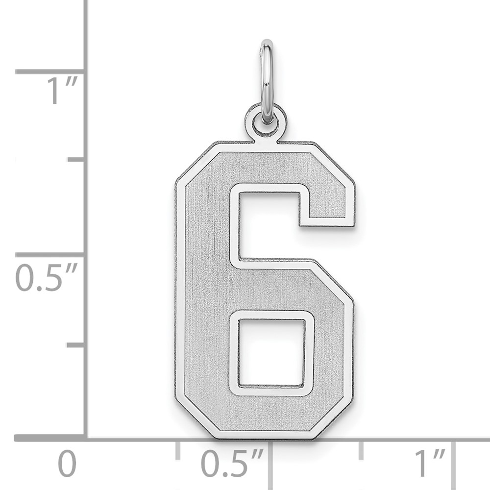 Sterling Silver/Rhodium-plated Satin Number 6 Charm