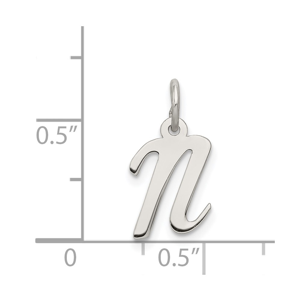 Sterling Silver Rhodium-plated Script Letter N Initial Charm