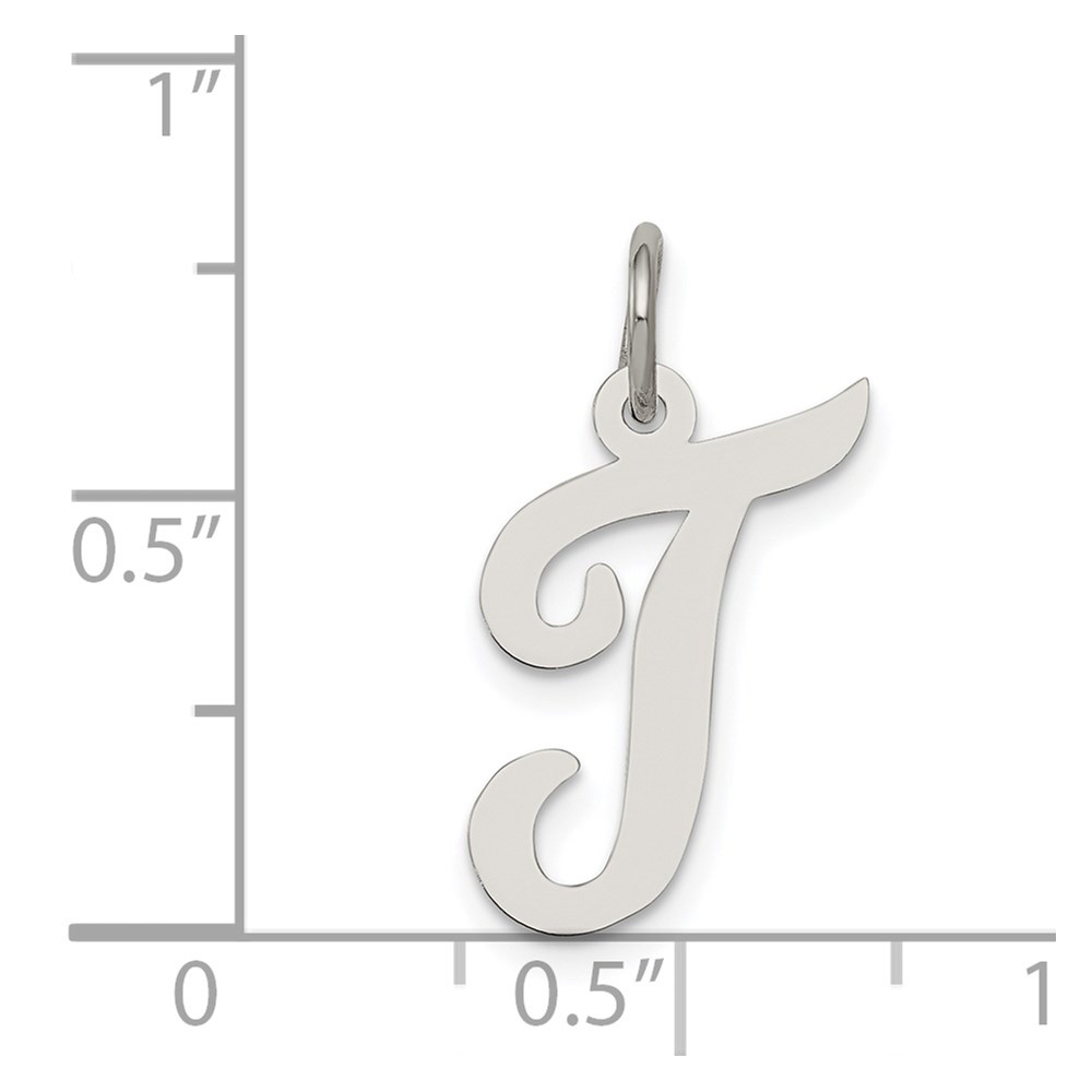 Sterling Silver Rhodium-plated Script Letter T Initial Charm