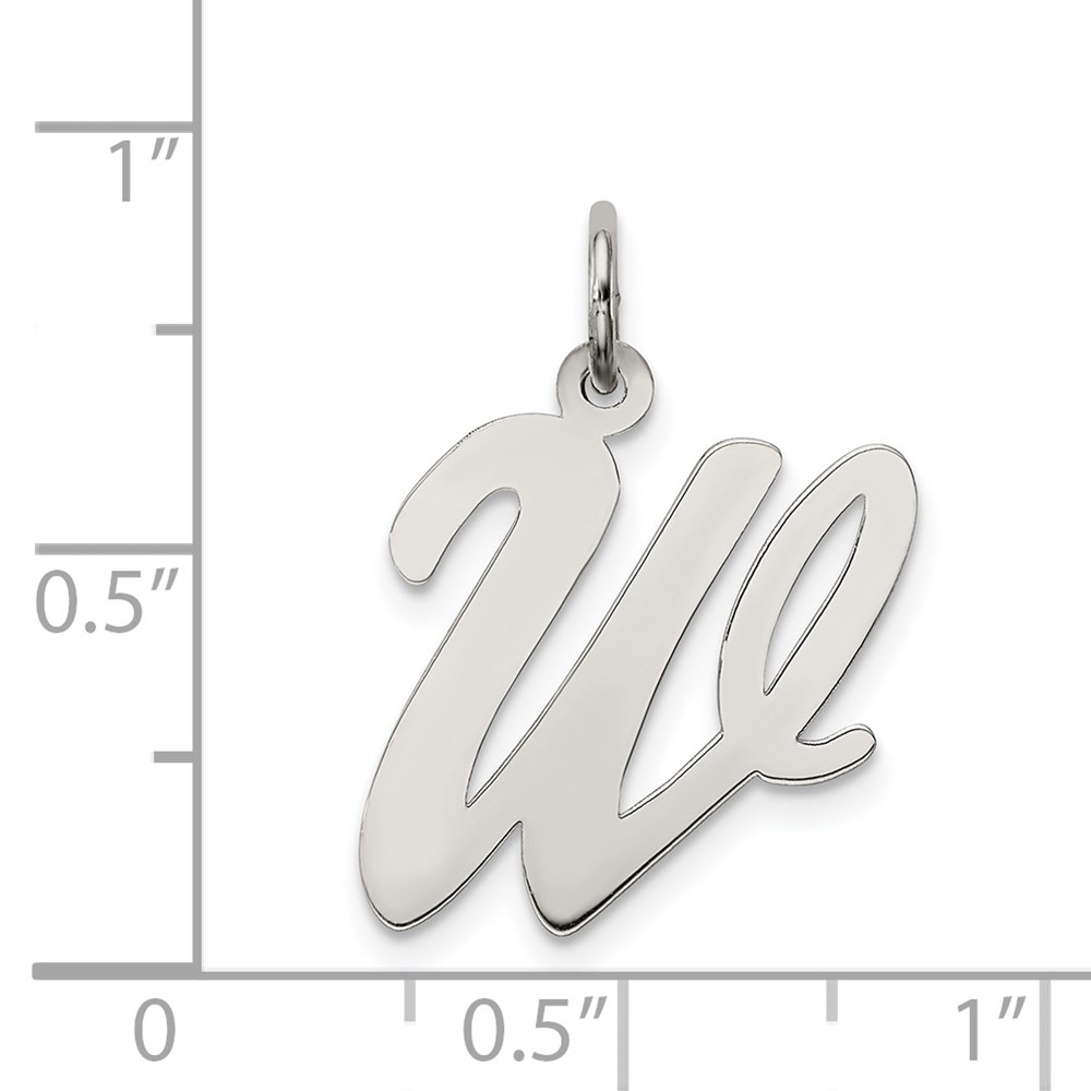 Sterling Silver Rhodium-plated Script Letter W Initial Charm