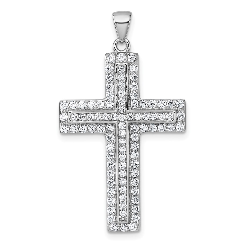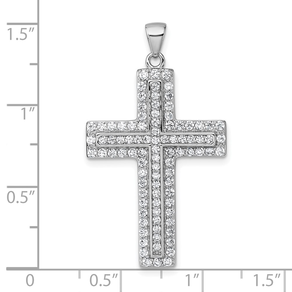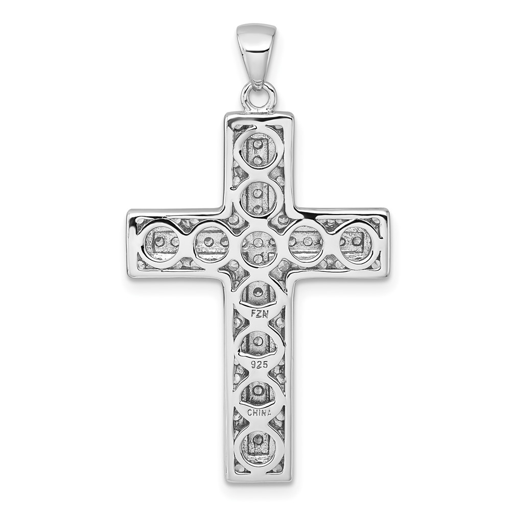 Sterling Silver Rhodium-plated White CZ Latin Cross Pendant