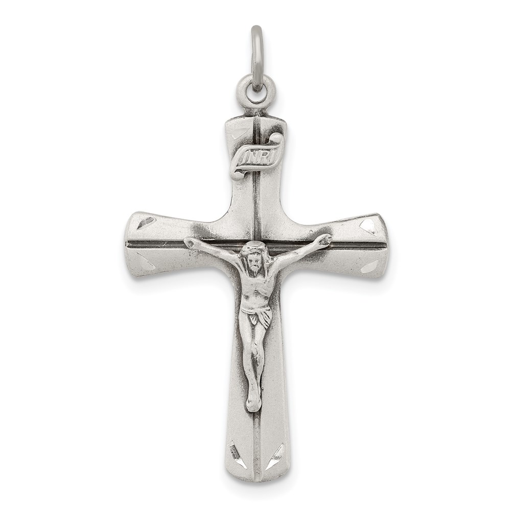 Sterling Silver Satin Antiqued Crucifix Pendant