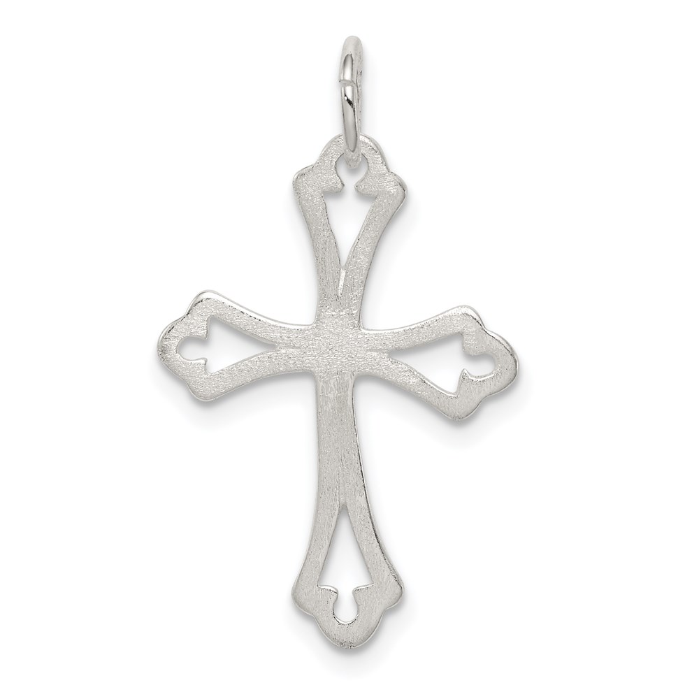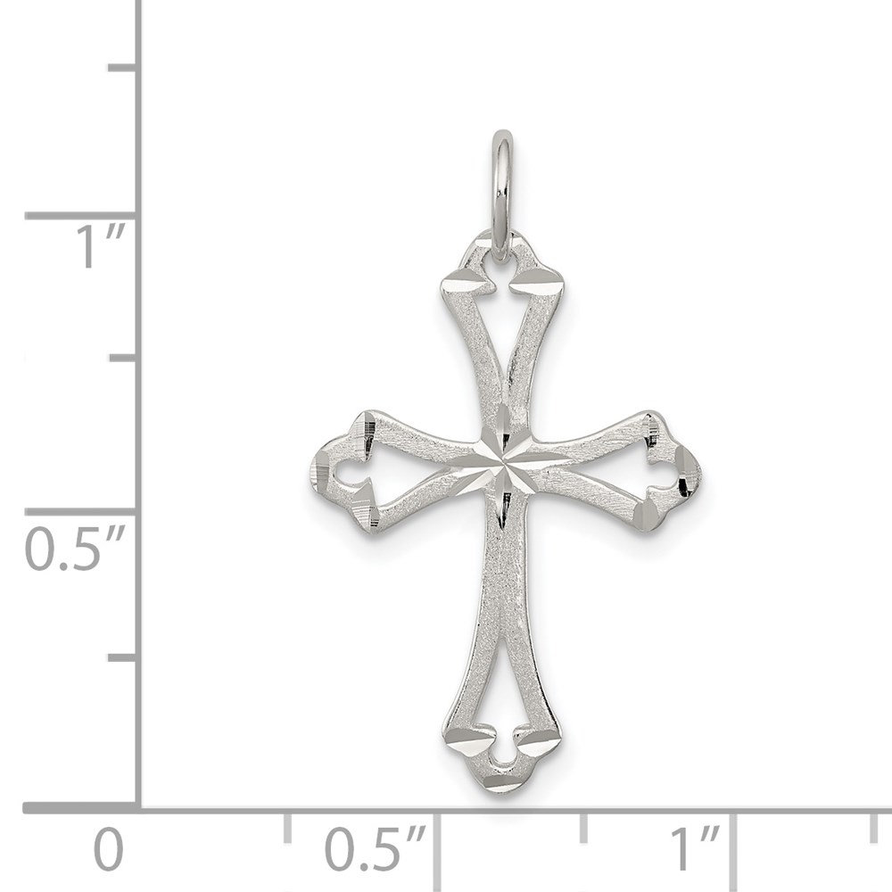 Sterling Silver Textured Diamond-cut Laser-Cut Cross Pendant