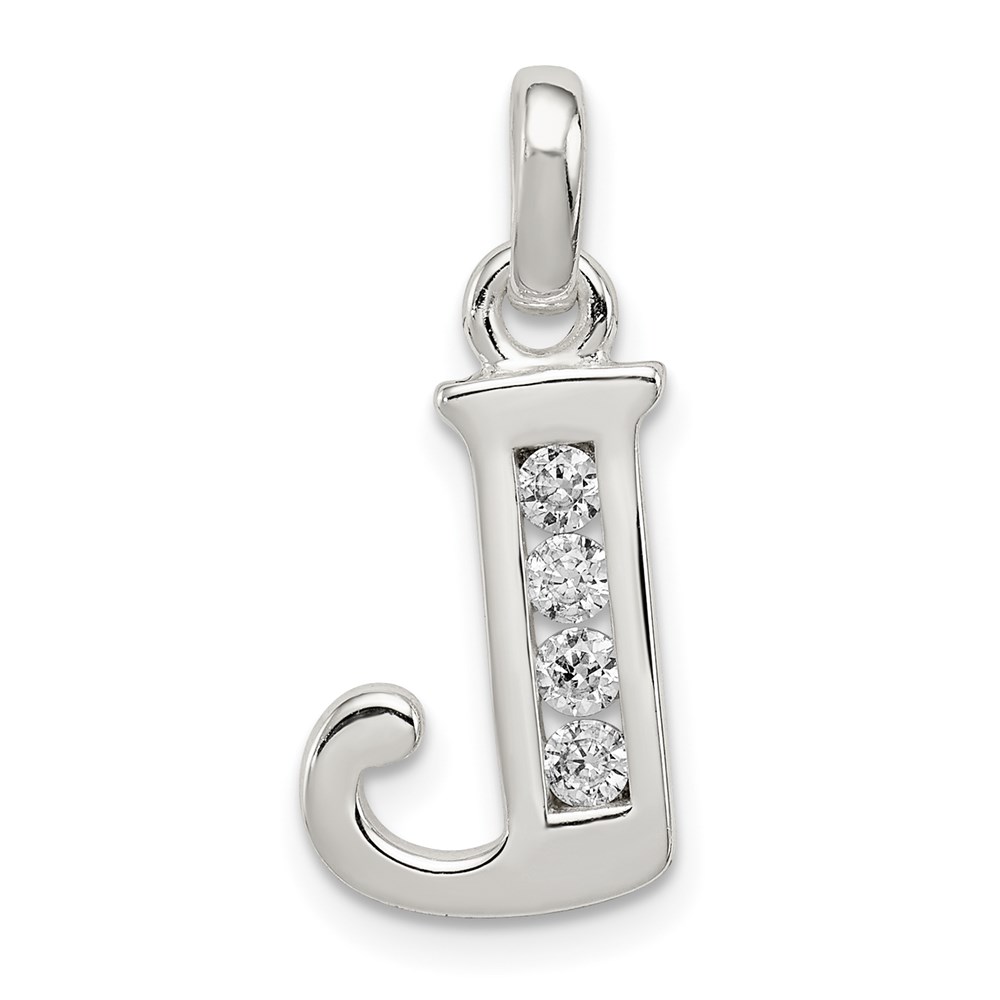 Sterling Silver White CZ Letter J Initial Pendant