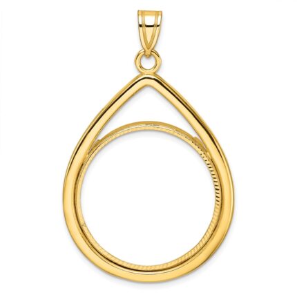 Wideband Distinguished Coin Jewelry 10k Polished and Diamond-cut with Rope Edge 22.0mm Prong Coin Bezel Pendant