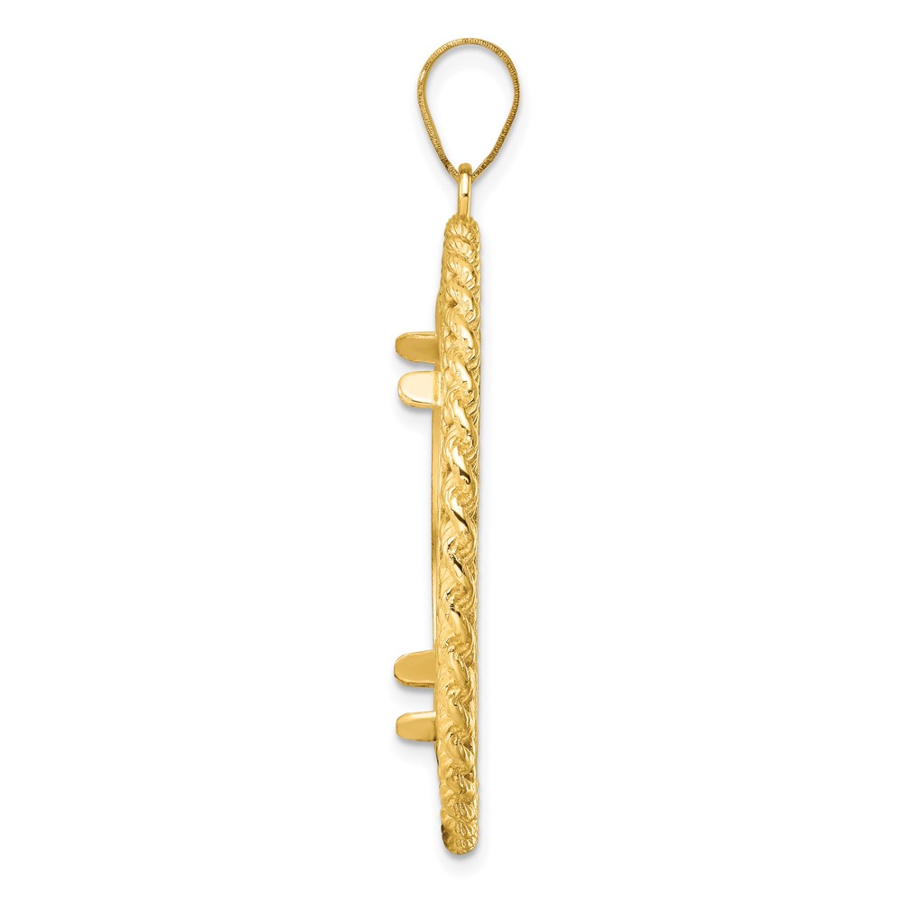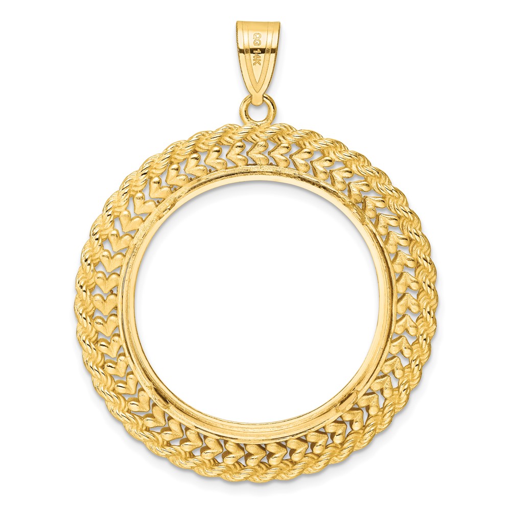 Wideband Distinguished Coin Jewelry 14k Polished and Diamond-cut Heart and Rope 27.0mm Prong Coin Bezel Pendant
